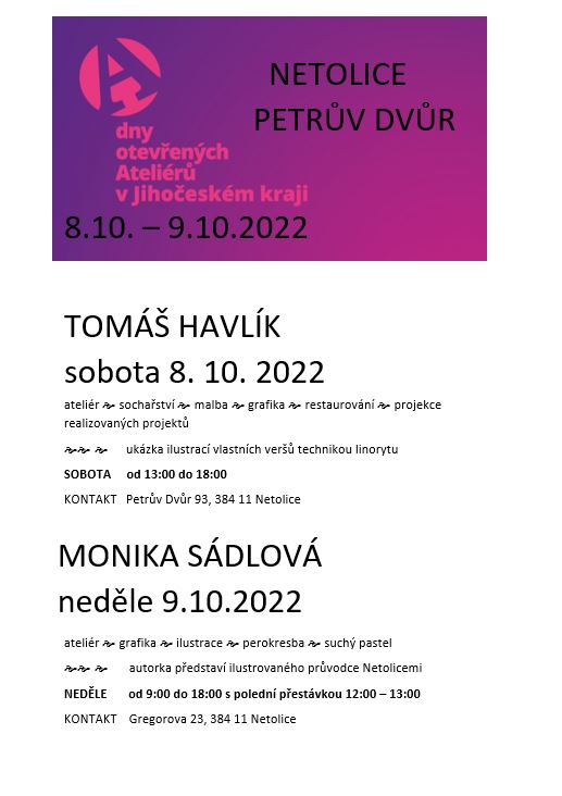 V rámci dnů otevřených ateliérů máte možnost se seznámit s tvorbou.
