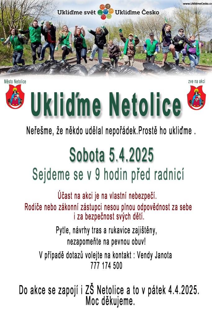 Malí i velcí občané se mohou zapojit do dobrovolnické celostátní akce Ukliďme Česko a pomoci s úklidem našeho města Netolice.