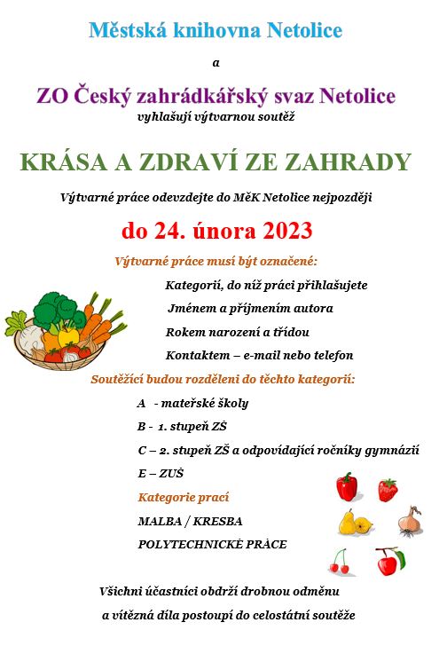Městská knihovna Netolice a ZO Český zahrádkářský svaz Netolice vyhlašují výtvarnou soutěž.