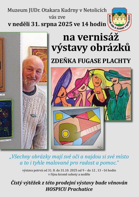 Vernisáž výstavy Zdeňka Fugase Plachty je naplánována na neděli 31. 8. 2025 od 14 hodin.